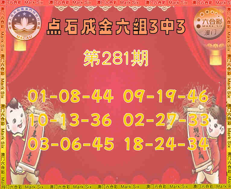281期: 🌸《点石成金》 🌸六组3中3🌸