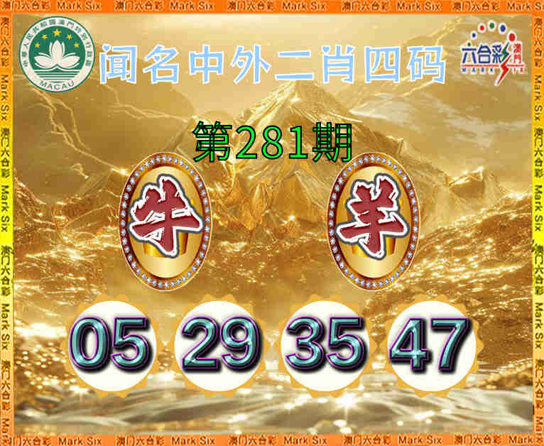 281期:『闻名中外』 🧣二肖四码🧣【牛】【05.29.35.47】开:羊47